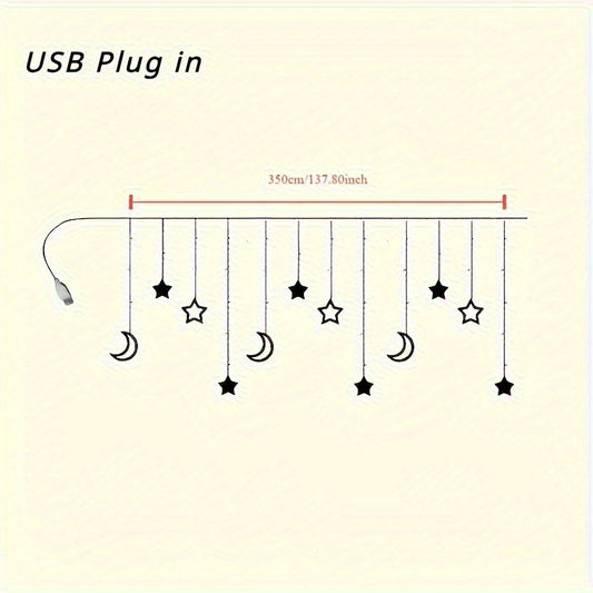 1 set of LED fairy curtain lights with stars and moon, suitable for decoration during Ramadan, Valentine's Day, weddings, birthdays, graduation ceremonies, parties, romantic decorations