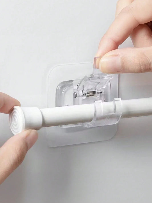 4pcs Curtain Rod - Damage-Free, Stick-On, Horizontal Rod Holders With Secure Clip Design, Adjustable Bracket, And Durable Plast